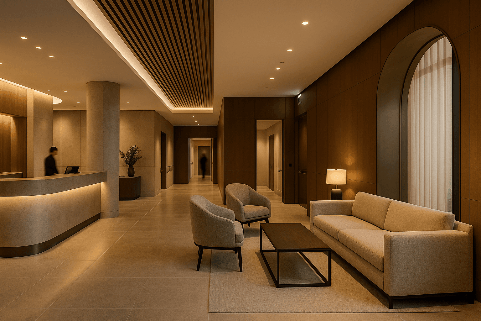 aesthetic venues designed to boost your brand. Every space provides behind-the-scenes efficiency and stability, allowing your team to excel. For your patrons, we provide ideal comfort, peaceful, and visually refined interiors that turn first-time visitors into loyal customers